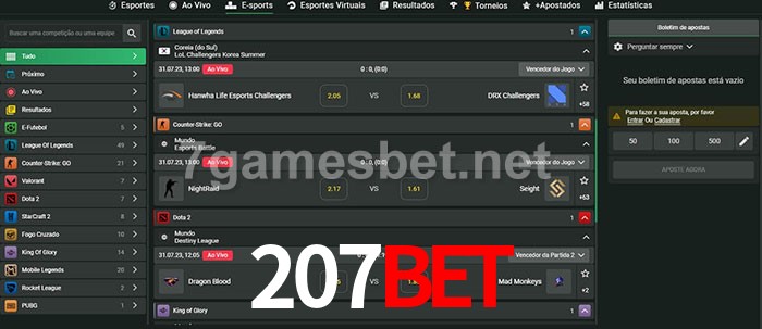 O 207bet oferece uma grande seleção de opções de apostas em e-sports com probabilidades competitivas